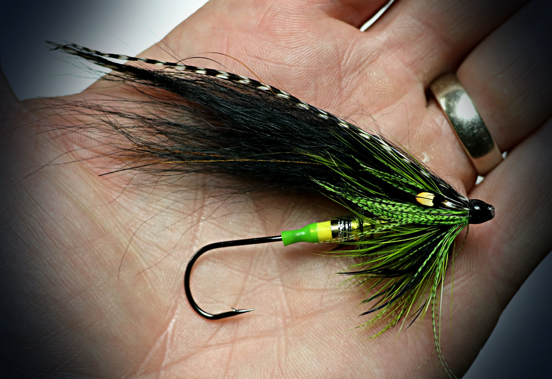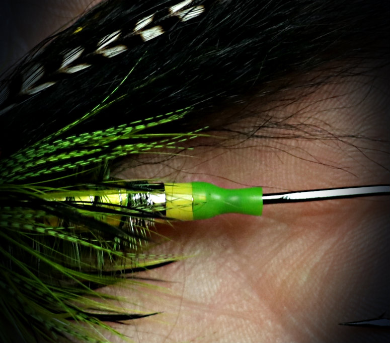 We really like the look of this pattern which is tied on a Heavy Bottle Tube. Though it swings a bit low in the rear in the test tank, it punches down through the current like a rock. The combination of black and chartreuse is a winner indeed!
