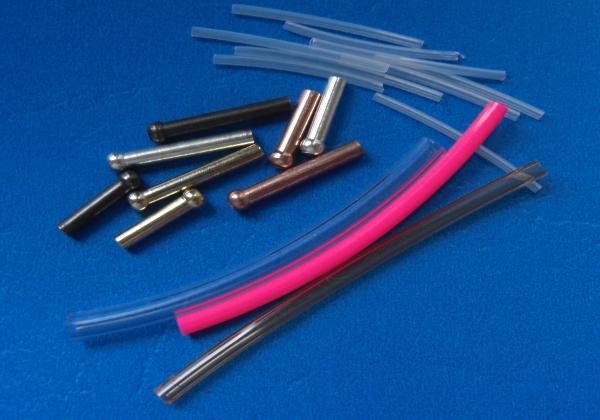 | These fantastic tubes are fantastic for two reasons. Though originally designed fro creating a fly with the convenience of a bead head, we found that they are superb for making Scandinavian style tube flies. Technique 1: You simply tye on your pattern and leave the "Nub" at the end to create your own tube with an extra punch of weight at the front. A super solution to solving hook "hang down". Technique 2: If you tie on the plastic liner tube that is inseeted in the metal component (like you would do with a Shumakov tube) the ball on the end stabalizes the wing and hackle of the fly. It essentially gives the wing and hackle a propped up effect that allows the fly to keep a great deal of its bulk when in a current. They come in 2 sizes (22mm and 15mm) and four types, brass, copper, gunsmoke, and silver. |