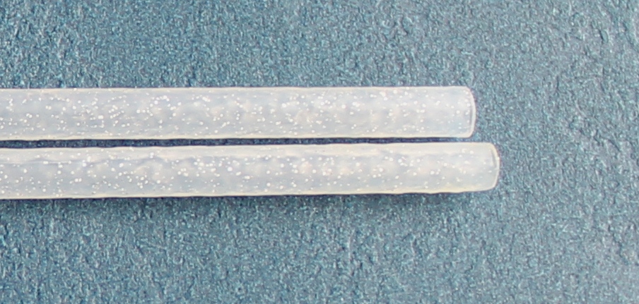Flec Scandinavian tube is extruded with tiny little "flecs" of tinsel melted right into the plastic. This allows the tube to have a subtle glimmer of flash incorporated directly into the body of the tube fly!