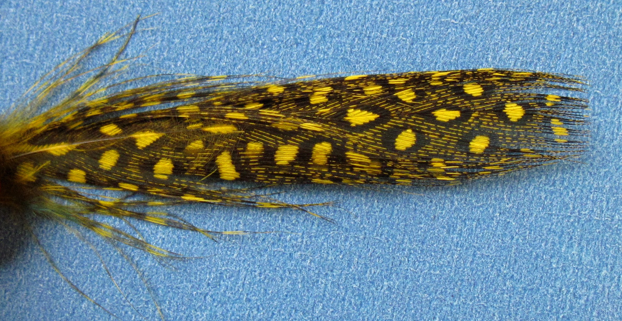 | One of our favourite feathers for making fine looking collars on tubes and hooked patterns. We dye all of the plumes in shop and have a few colours not available in most fly shops! These plumes average 3 - 4 inches in length ans come in strung packs of 30-40 feathers. |