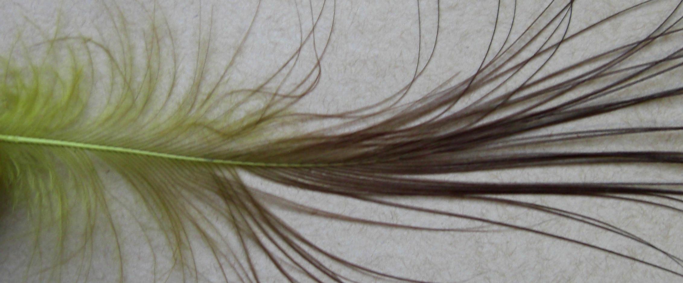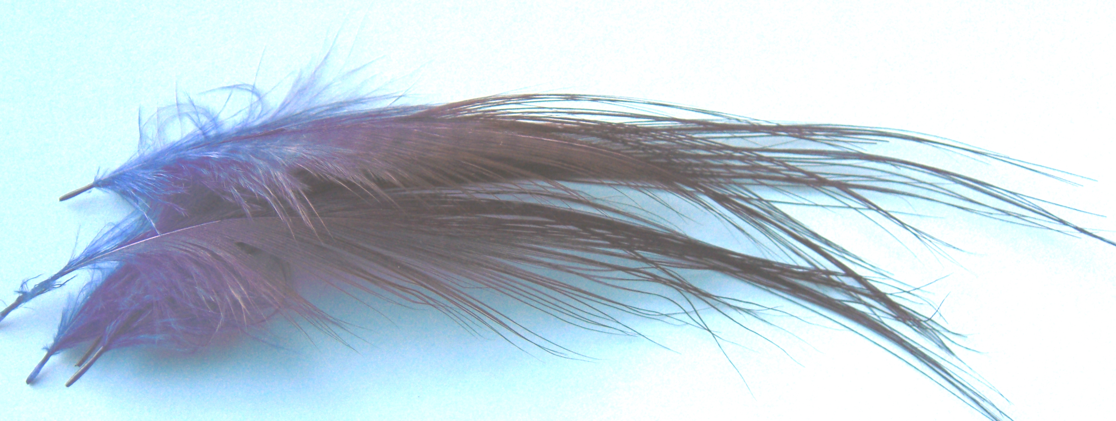 | The ORIGINAL spey feather (other than the extinct Spey Cock). If you have tied with Heron substitutes like Rhea or Blue Eared Pheasant, you will quickly notice how much better the original is. Our natural Heron is the premium feathers that have been dyed over the natural chocolate colour. The dye jobs are strong, though they are covering a darker colour in most cases. This gives the feathers a natural looking transition where the bright dye colour is very evident at the base of the plume and the colour gets darker as you move up the feather. These are the plumes you are after if you are wrapping these as traditional spey plumes. The stems are very supple and the feather quality is fantastic! The picture below shows how the smaller heron is just as beautiful as the XL Heron, These plumes are 3-4 inches long and are very comparable to Blue Eared Pheasant. |
