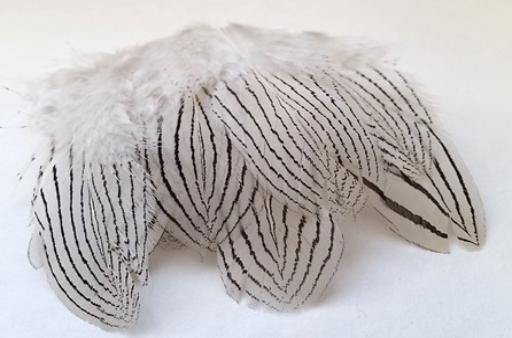 | Silver Pheasant is a great feather for making colours or cheeks on larger patterns. Perfect for tube flies! The black and white barring give great contrast and really makes the other colours you have used on your patterns really jump out. |