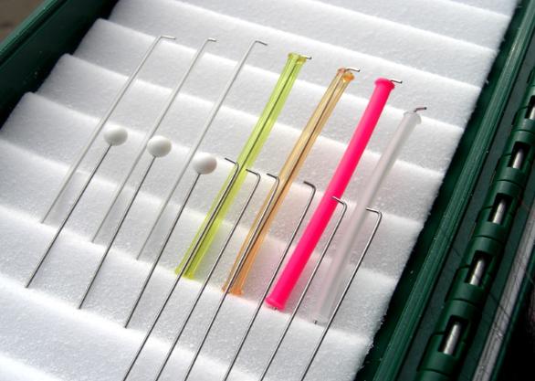 | We have had many requests to supply our custom Stainless Steel pins in a "kit" that can convert any foam fly box into a sturdy tube box. These straight, stainless steel pins, give you control over your box. The custom made pins come in three different lengths (up to 3 inches) and in a few different diameters. The diameters are small enough to hold the skinniest tube flies and all pins have an end on them to hold the tube directly into the foam. Since you push the pins in, you control how tight you want to pack your box. We have fit as many as 50 large saltwater flies in this box. The best part about using the pins is that you can still use the box for standard hooks too.....it makes your own box into a multi-purpose fly holder! |