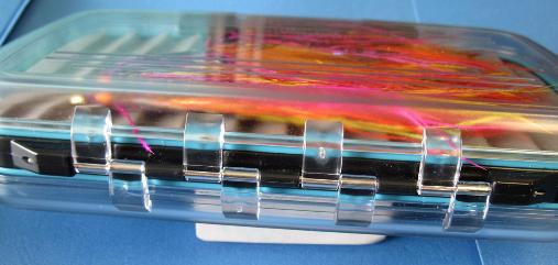 | All boxes are completely water tight and are hinged together with a stainless steel pin making this extra sturdy box perfect for rough and tumble fly fishing! water tight. With a completely sealed box filled with air, they also float. They now only come in two great sizes, medium, and extra large with 40 of our custom made stainless steel pins. |